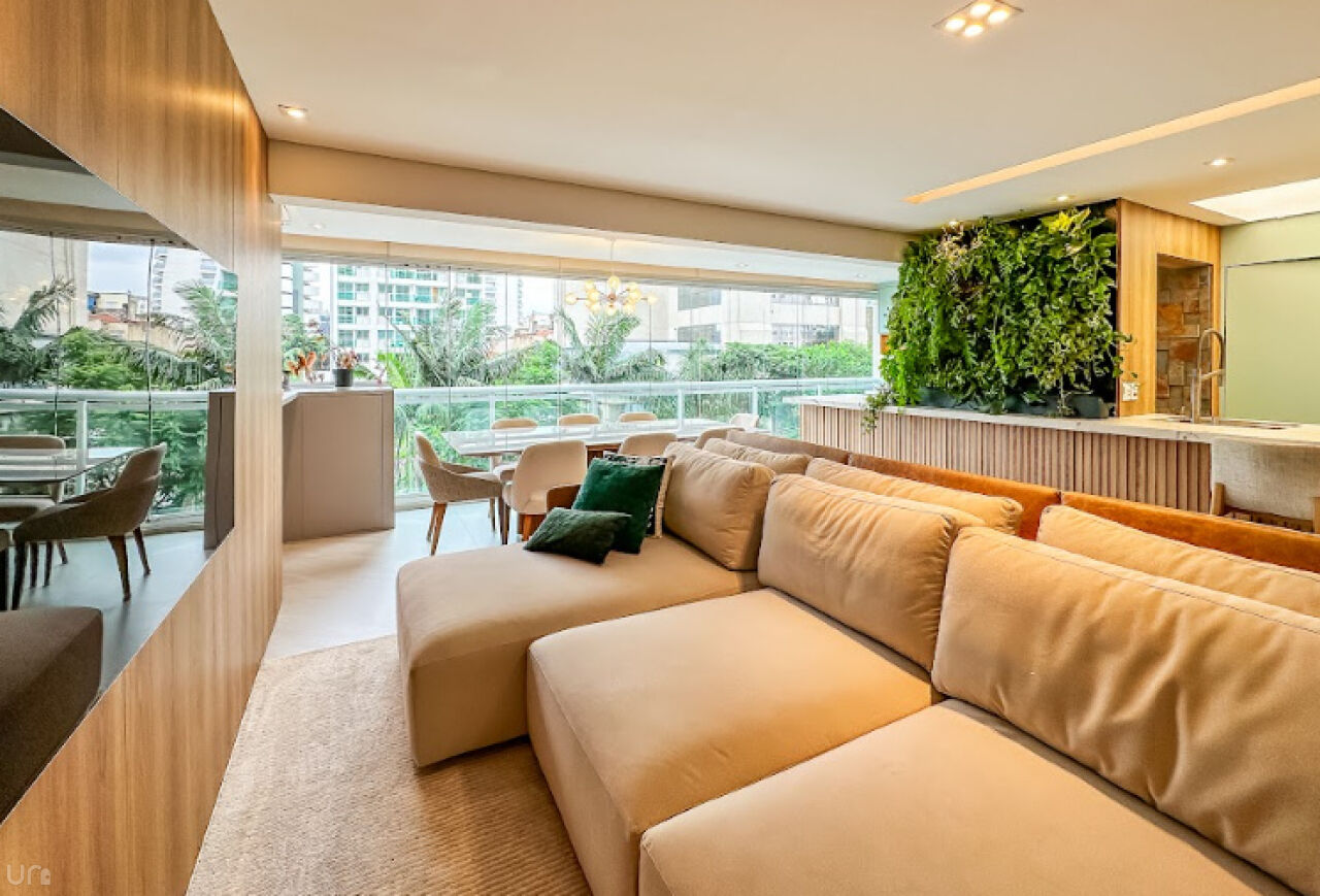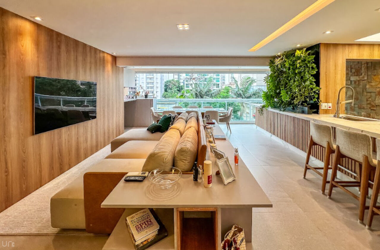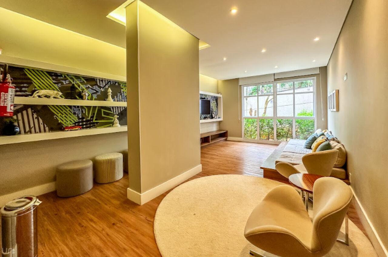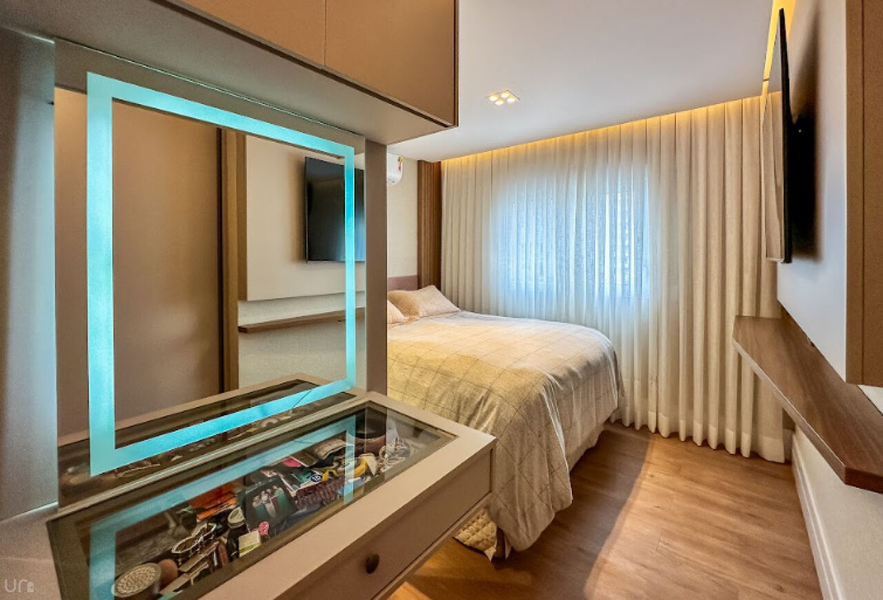 O apartamento é novo, n, recém terminado, possui 106 metros quadrados, duas suítes, duas vagas, um lavabo, um escritório, uma sala estendida em conceito aberto e 100% projetado pela arquiteta. Destaque para a iluminação automatizada da Philips Hue, oferecendo até 1.000 opções de cores, casa inteligente, com dimerização, controle pelo celular e assistentes virtuais.