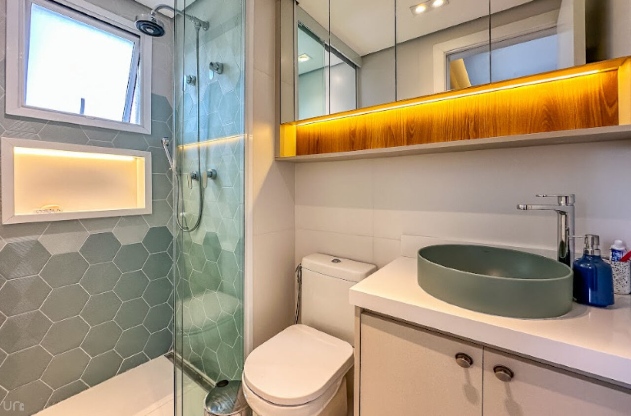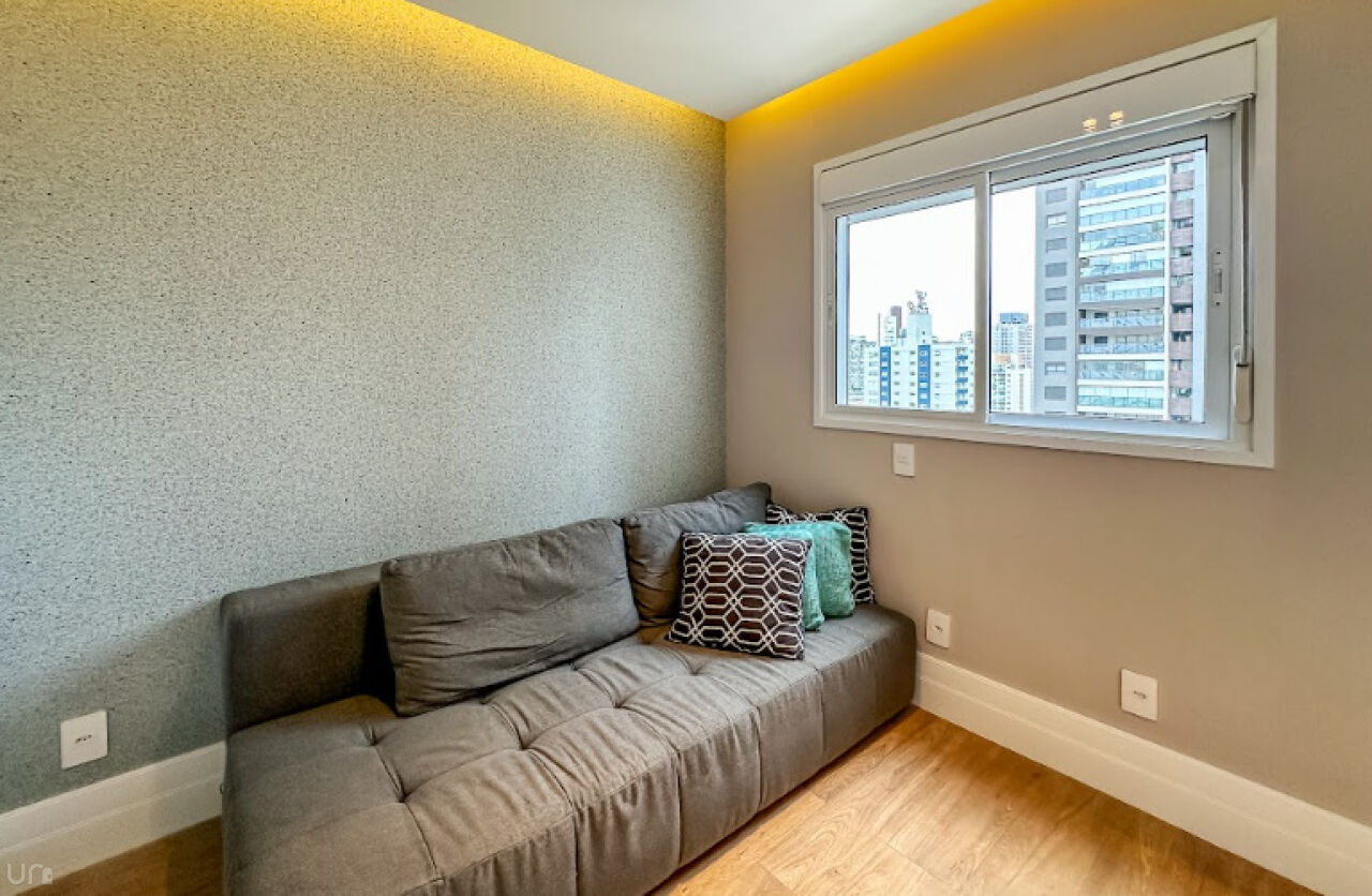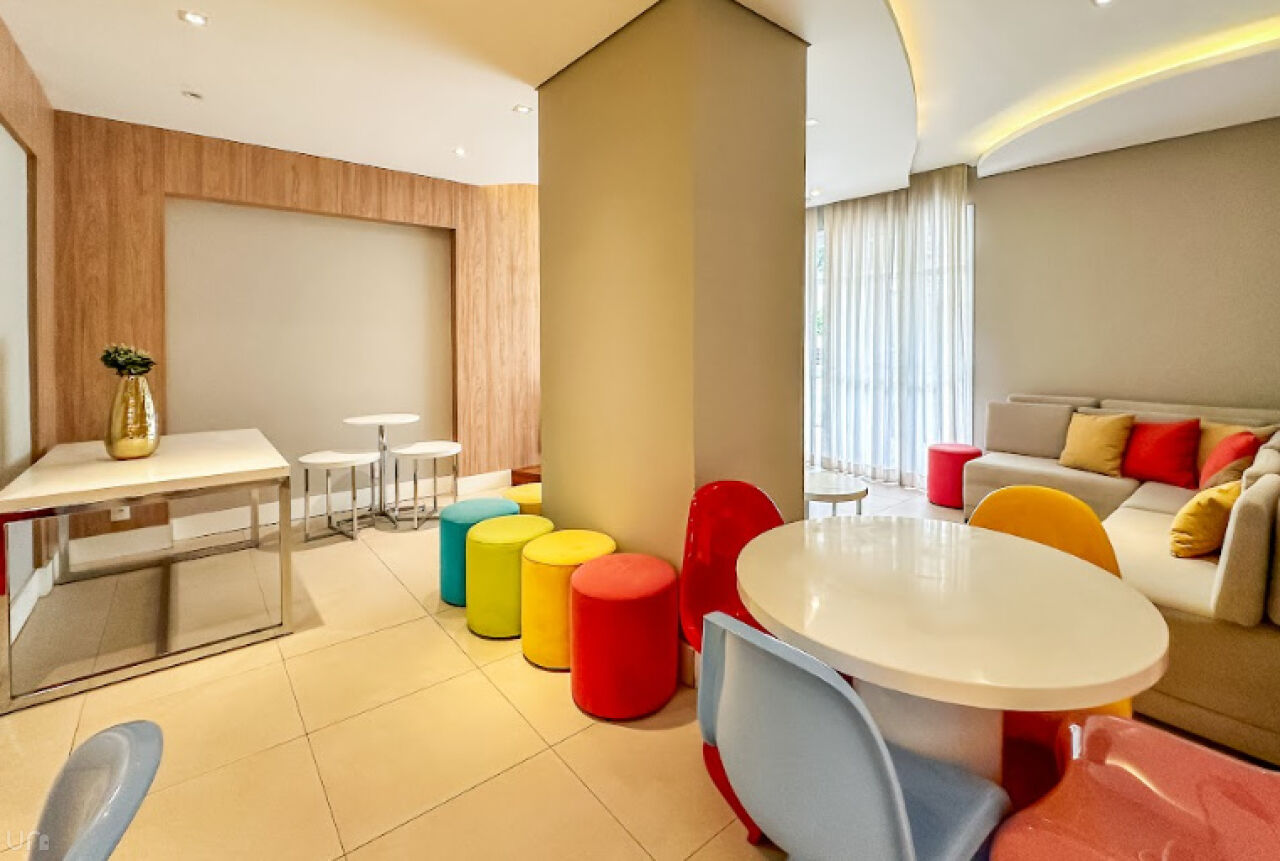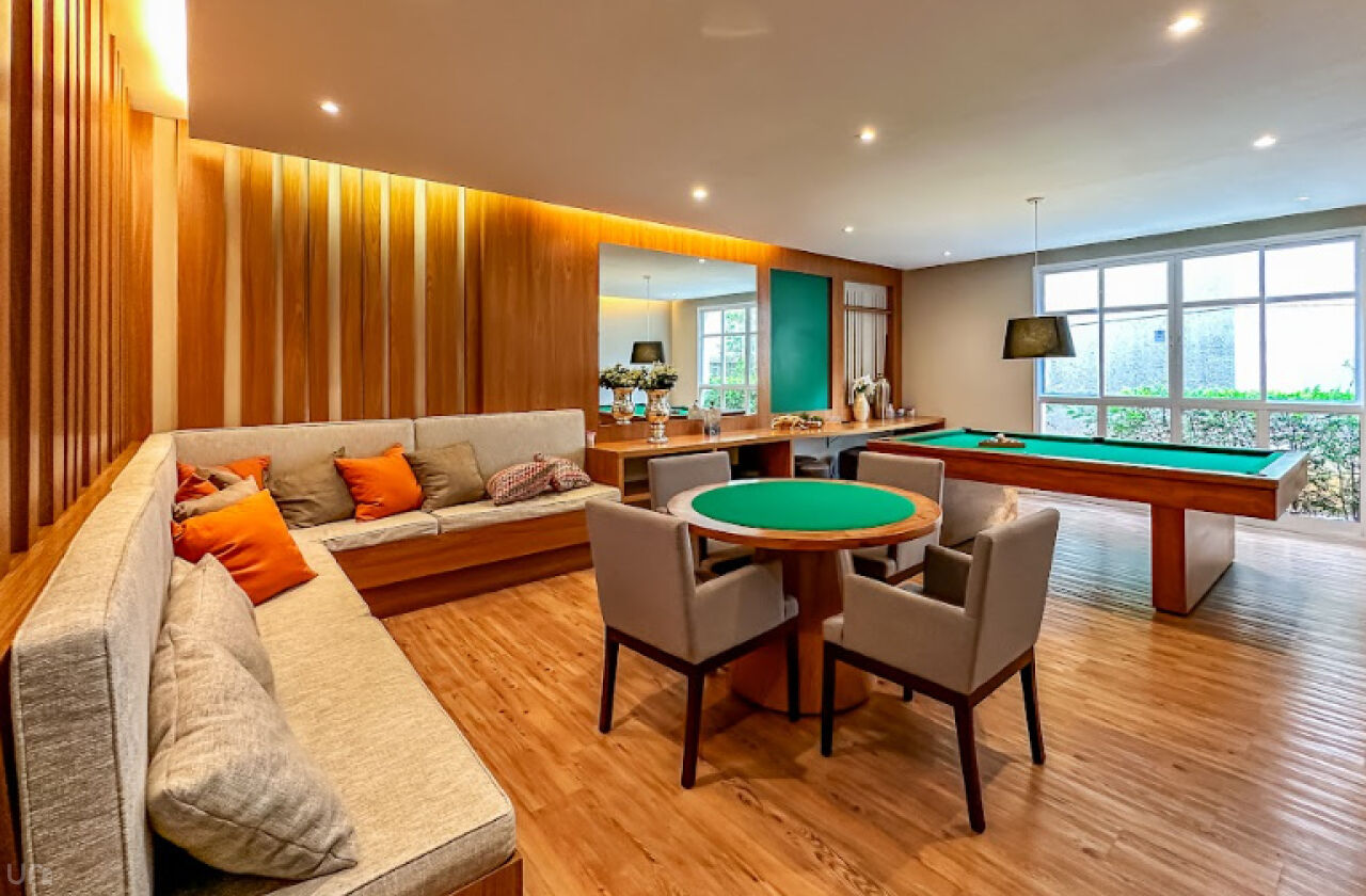 O apartamento é novo, n, recém terminado, possui 106 metros quadrados, duas suítes, duas vagas, um lavabo, um escritório, uma sala estendida em conceito aberto e 100% projetado pela arquiteta. Destaque para a iluminação automatizada da Philips Hue, oferecendo até 1.000 opções de cores, casa inteligente, com dimerização, controle pelo celular e assistentes virtuais.
