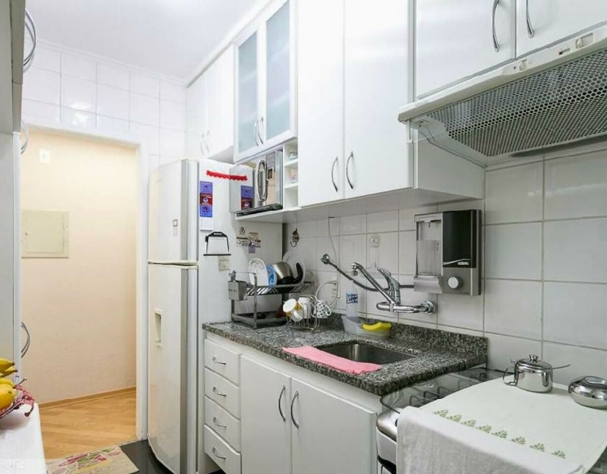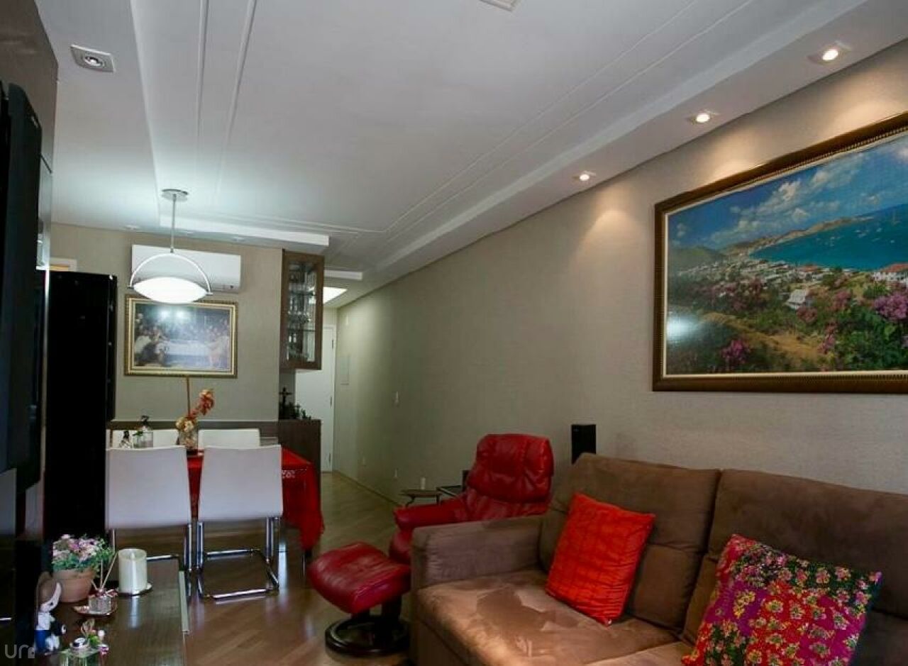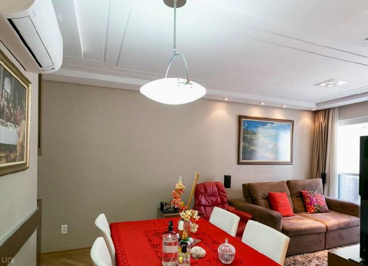 Piso laminado nos 3 dormitórios, sala de estar/jantar e corredor de entrada. Porcelanato polido na cozinha e área de serviço na cor cinza escuro. Possui gesso rebaixado na sala de estar/jantar e em um dos dormitórios, com luzes spot. Ar condicionado na sala de estar/jantar. Papel de parede luxuoso no corredor de entrada e nas paredes da sala de estar/jantar.