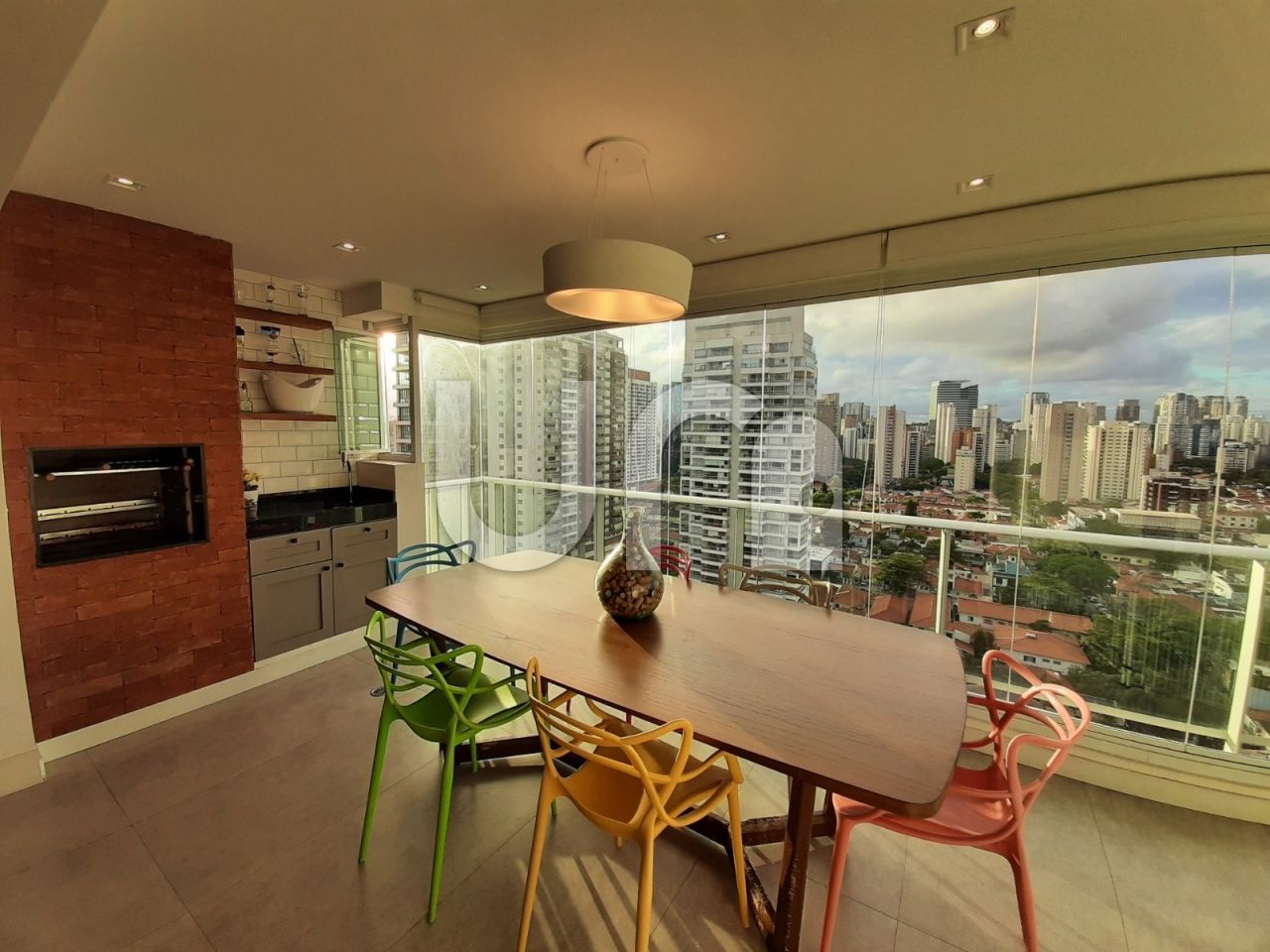 Lindo apartamento com 105m², 2 suítes e 2 vagas de garagem. O imóvel possui uma varanda gourmet integrada com a sala, área de serviço, armários embutidos, ar condicionado e lavabo. O condomínio possui academia, churrasqueira, espaço gourmet, forno de pizza, jardim, piscina, playground, quadra poliesportiva, salão de festas e jogos. Fácil acesso ao transporte público, como a estação Campo Belo do metrô e principais avenidas de acesso como Av. Santo Amaro e Av. Jornalista Roberto Marinho. Fácil acesso aos Shoppings Morumbi, JK Iguatemi e Vila Olímpia.