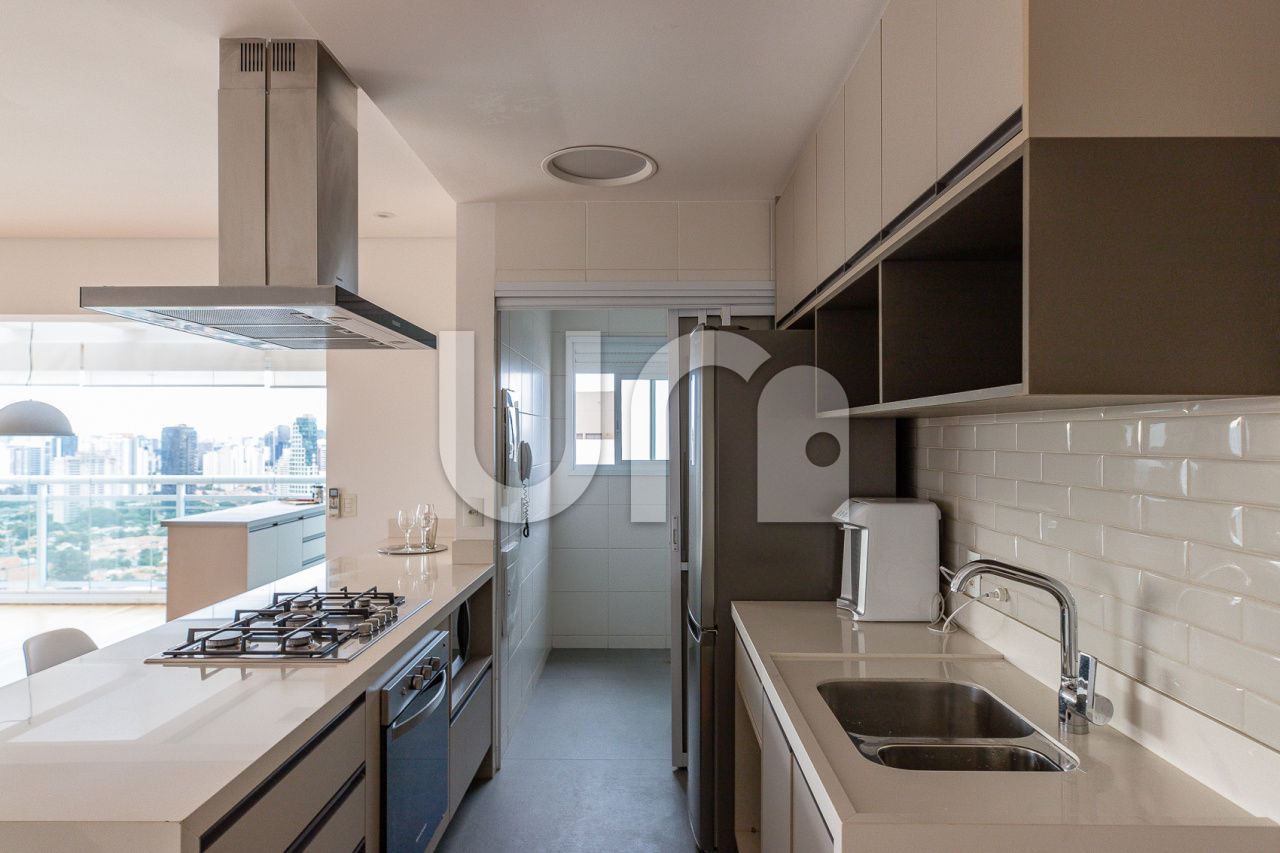 A sala de estar, cozinha e espaço gourmet são integrados, para melhor receber os amigos, familiares e contemplar a vista. Nesse ambiente você encontrará muita luminosidade e eletrodomésticos modernos.