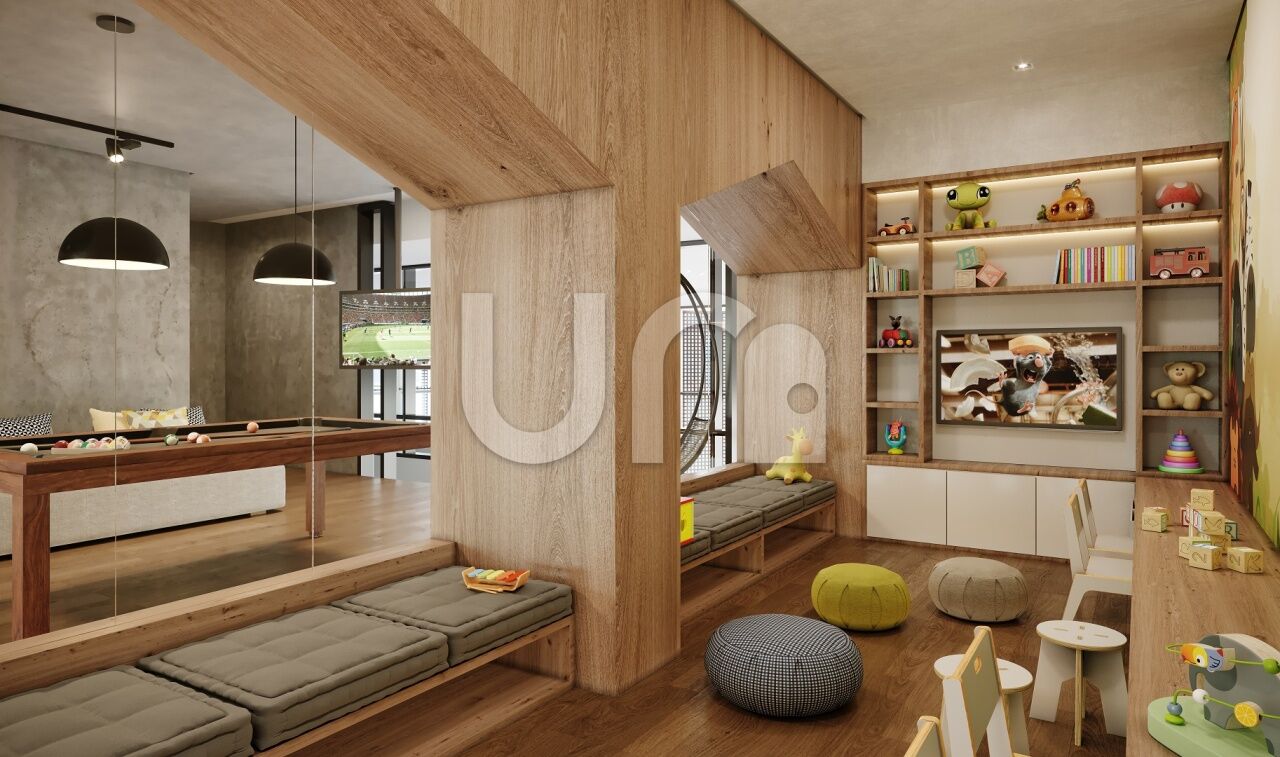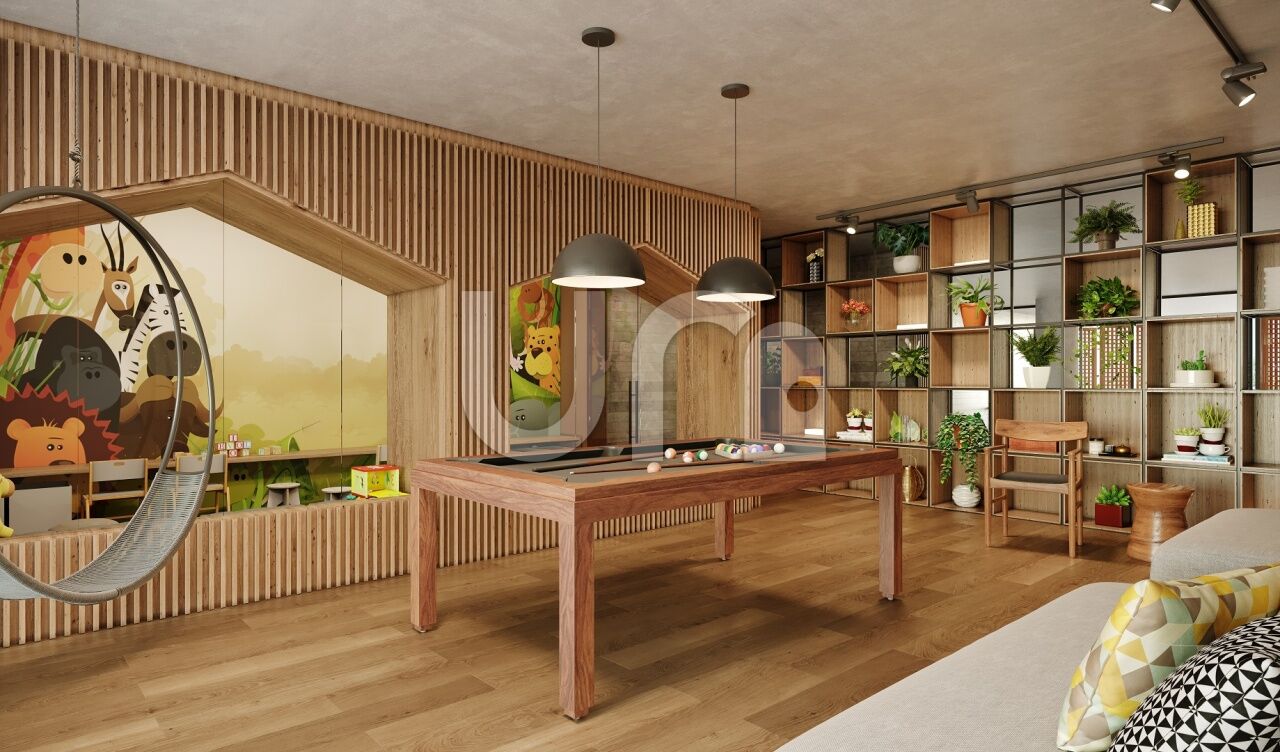 Piscina adulto com raia de 25 m², academia, coworking, sauna seca com descanso, brinquedoteca, salão de festas, churrasqueira, playground e sala de jogos.