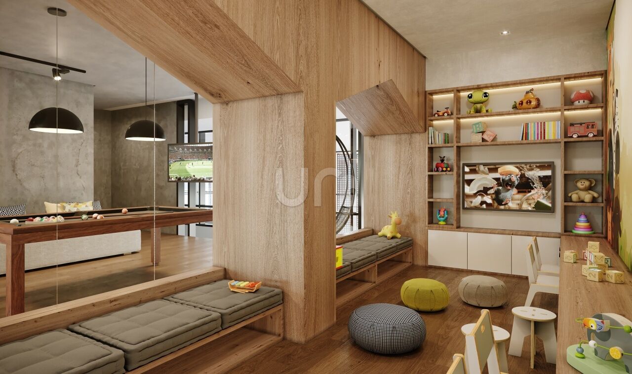 Piscina adulto com raia de 25 m², academia, coworking, sauna seca com descanso, brinquedoteca, salão de festas, churrasqueira, playground e sala de jogos.
