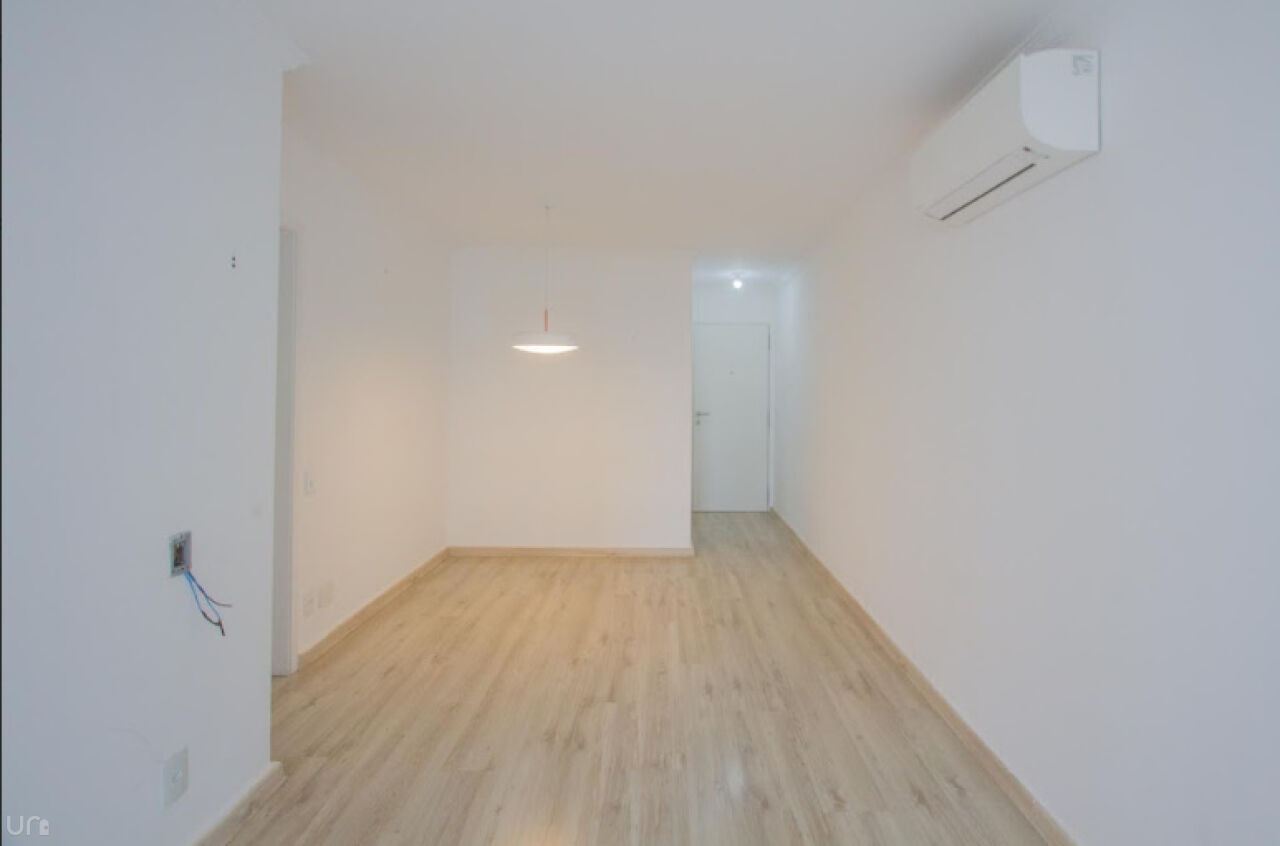 Lindo Apartamento com 69,97 m2 de área útil bem distribuídos. Living para 2 ambientes com piso em carpete de madeira e ar condicionado, além de uma sacada com vista. Possui 2 dormitórios amplos, sendo 1 suíte, com armários e piso em carpete e banheiro social. A cozinha é ampla e repleta de armários , fogão e exaustor. e A lavanderia conta com um quarto e um banheiro para funcionários.