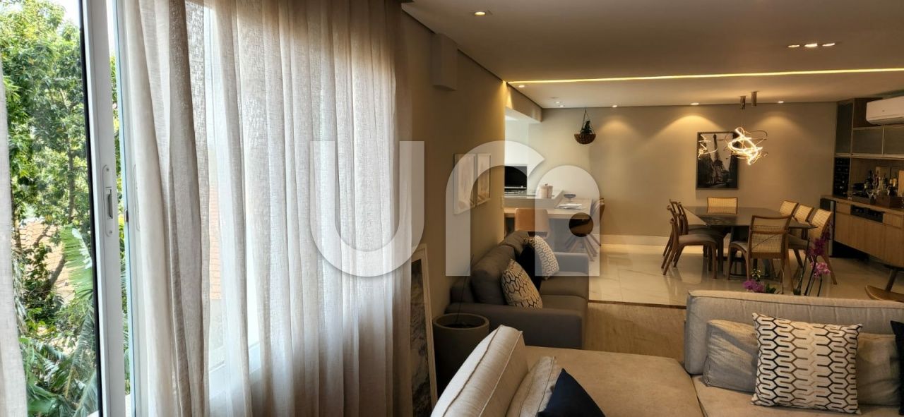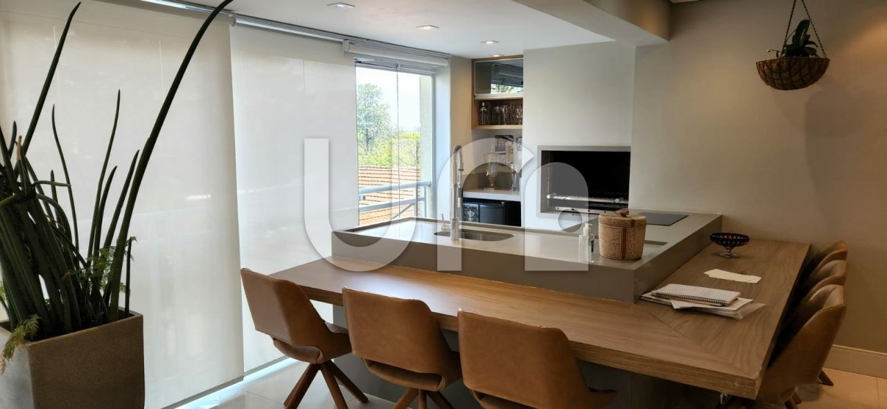 Sala grande, possibilitando diversos ambientes, com varanda gourmet integrada, bem equipada com churrasqueira a carvão.