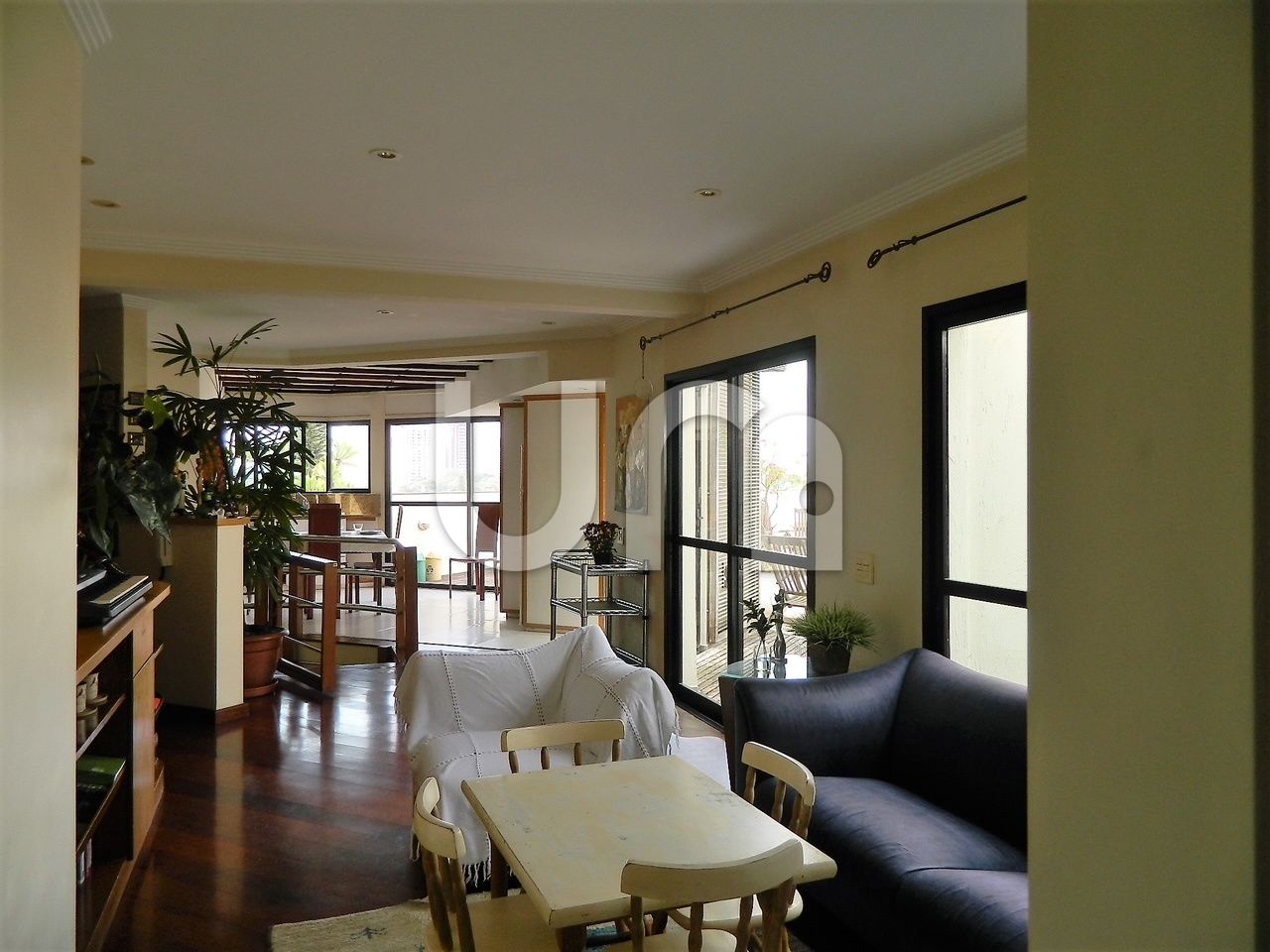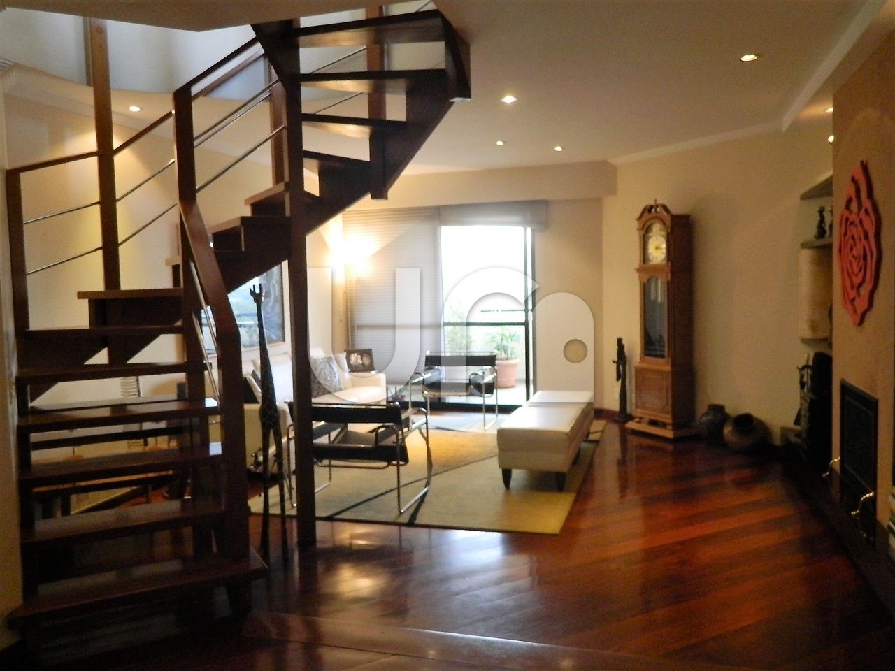 Cobertura duplex com 349m², 4 dormitórios, sendo 2 suítes e 4 vagas de garagem com depósito privativo. O imóvel possui sala para 4 ambientes, área de serviço, armários embutidos, WC e quarto de serviço, varanda, lavabo, lareira, piscina, churrasqueira e terraço. O condomínio possui academia, piscina, quadra poliesportiva, salão de festas e sauna. O imóvel está próximo à estação Brooklin do metrô e principais vias de acesso como Av. Santo Amaro e Av. Jornalista Roberto Marinho. Próximo ao shopping Vila Olímpia e JK Iguatemi.