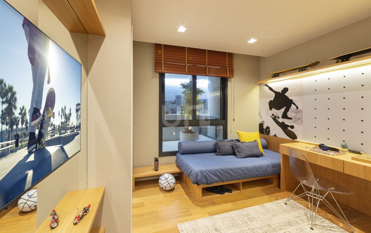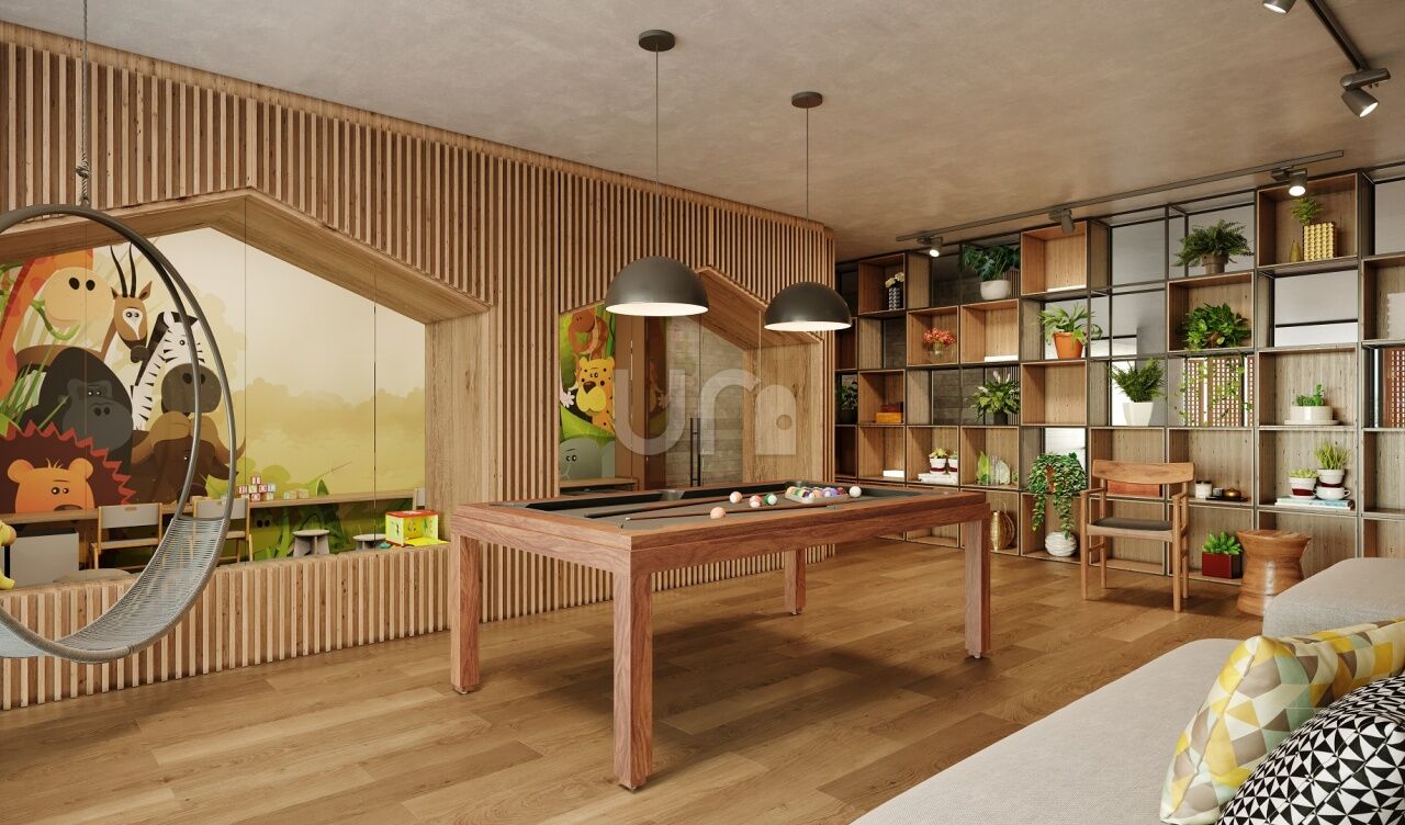 Piscina adulto com raia de 25 m², academia, coworking, sauna seca com descanso, brinquedoteca, salão de festas, churrasqueira, playground e sala de jogos.