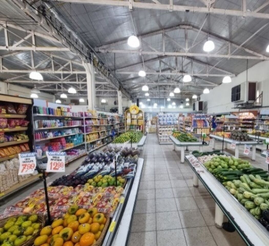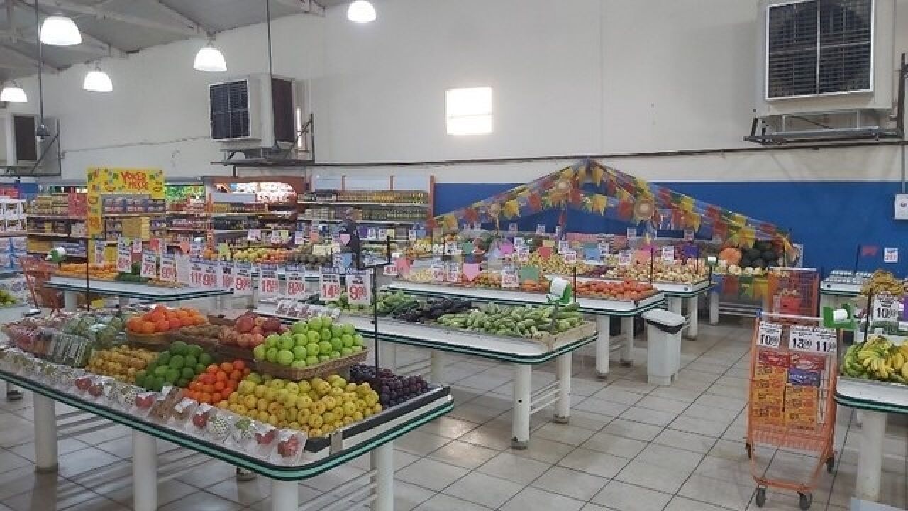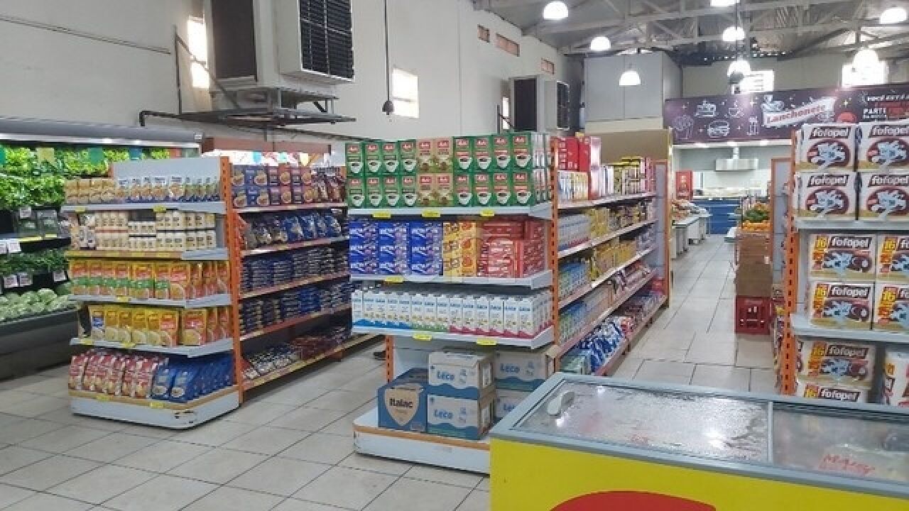 Supermercado completo com açougue, padaria, hortifruti, frios e laticínios, mercearia e lanchonete.
