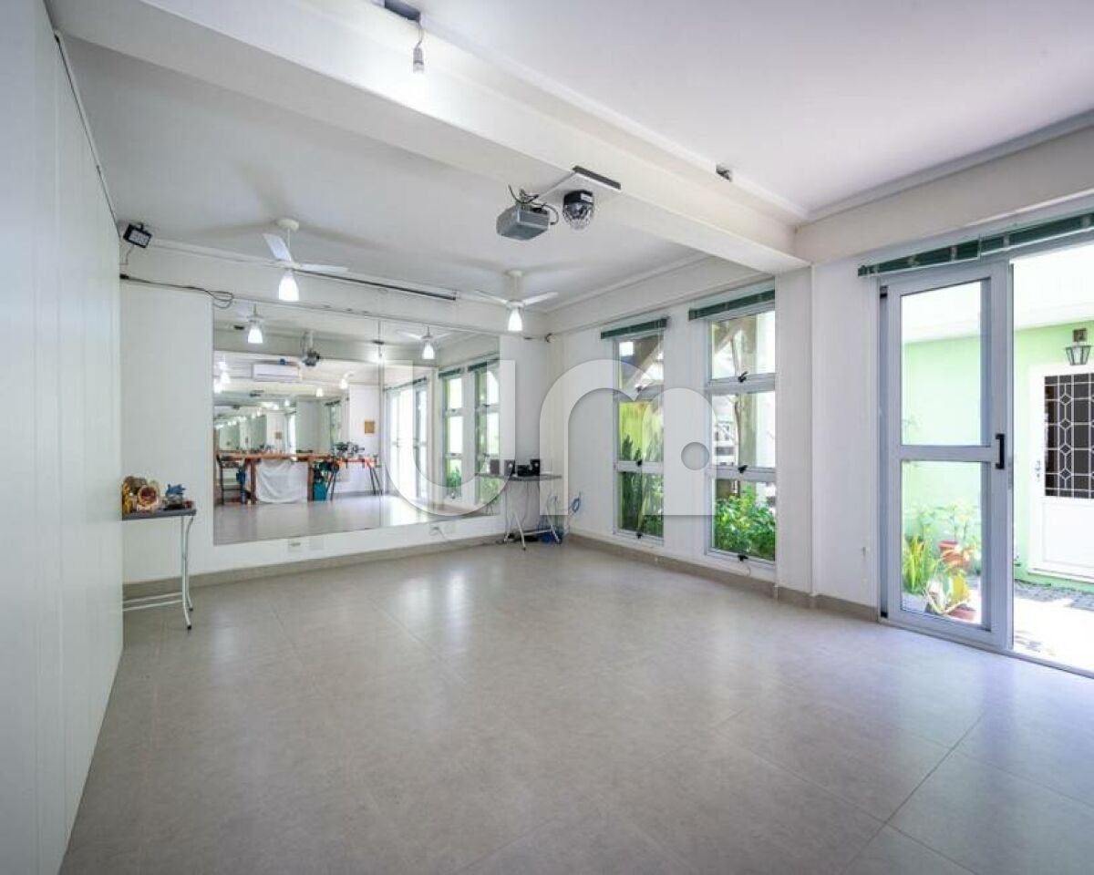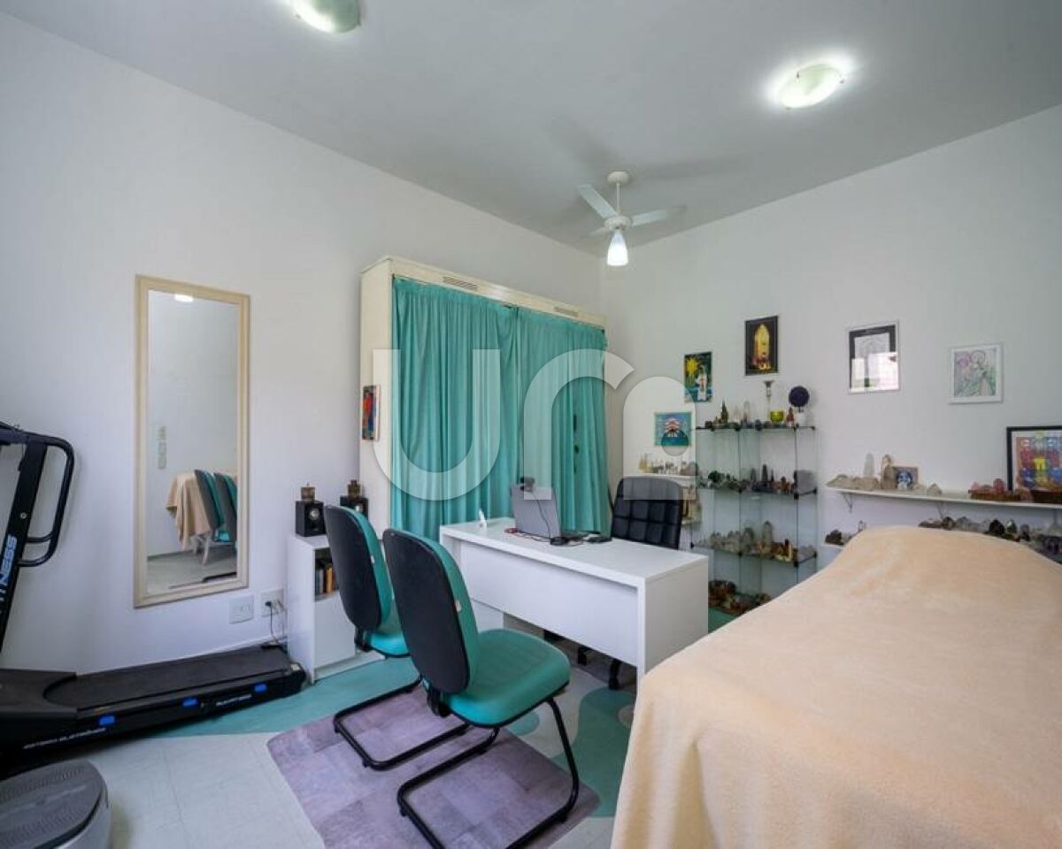 Casa com 5 quartos (sendo um deles suíte), mais 3 banheiros (sendo 1 com banheira de hidromassagem), sala íntima, sala de jantar, cozinha, lavanderia, estoque/despensa, 2 salas amplas com hall social.